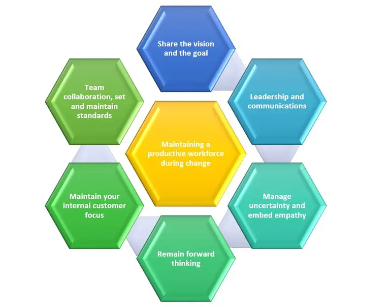 Maintaining and enhancing a productive workforce in times of change is not always simple to achieve but it can summarised in some simple concepts: