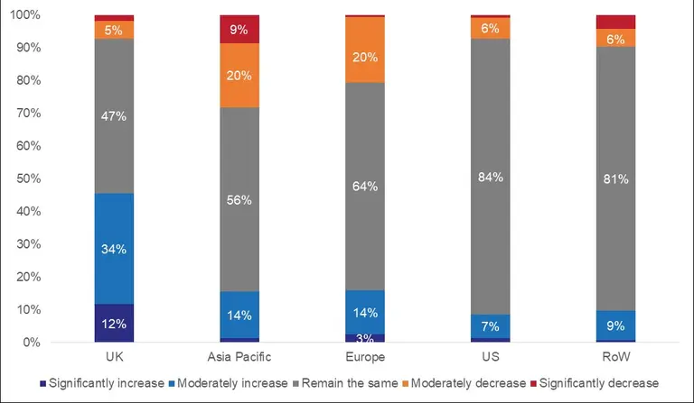 Bringing manufacturing back to the UK is a hot topic. Our survey found over a third of manufacturers reported that they intend to moderately increase their use of UK-based suppliers in the next two years, with a further 12% indicating a significant increase. This is different to previous years which showed manufacturers had not significantly increased the number of UK suppliers.