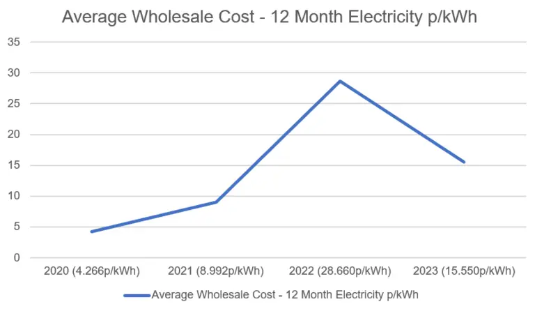 Whilst prices have returned to the pre-Ukraine invasion levels of January 2022, current wholesale electricity prices are still up 72% against the 2021 average. This means that many who secure another fixed price energy contract, whether that be for 12 months or 2 years, will most likely be paying more than they would have only a few years ago.