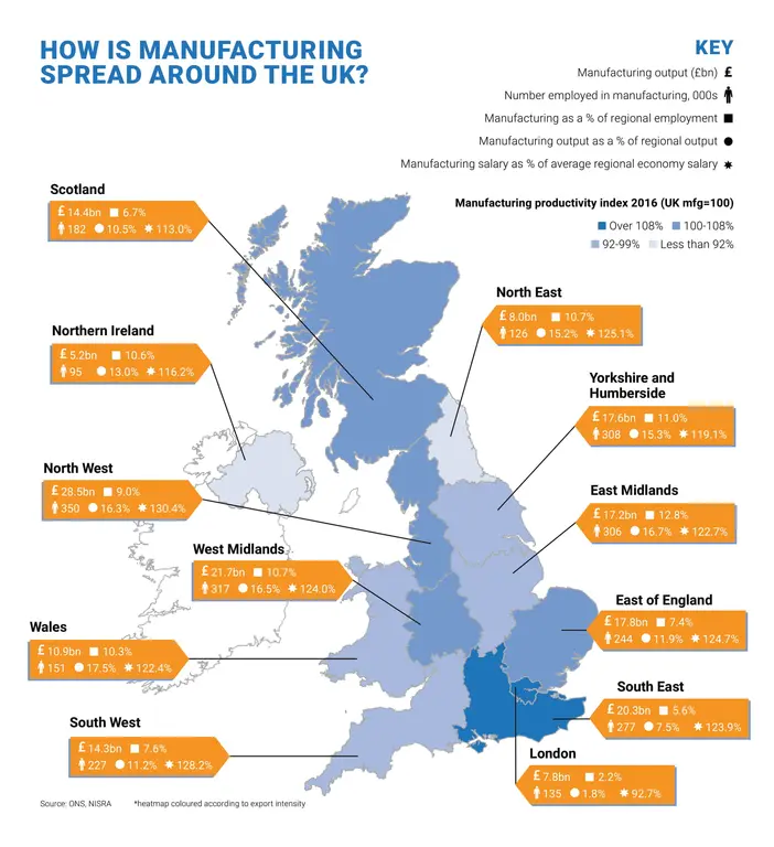 The analysis smashes the myth that manufacturing jobs are badly paid with the average salary in manufacturing of £33,592, compared to £29,832 for the whole economy and way above services at £29,014.