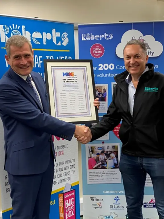 The commitment from Leaders, Managers and Supervisors was recognised in a presentation from Andrew Ward Health, Safety and Sustainability Director of Make UK to Mark Cooper Transformation Director of Roberts Bakery: