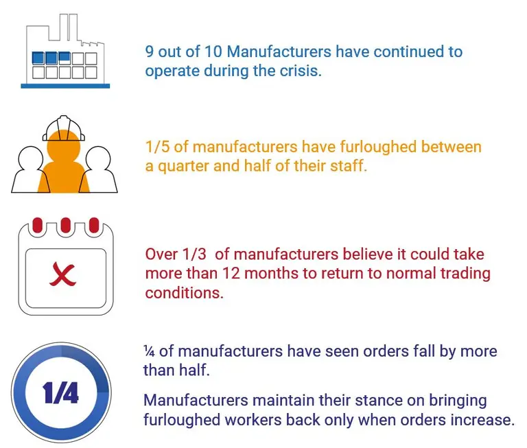 Britain’s manufacturers have become increasingly pessimistic about a return to normal trading conditions, with the number believing that it will take more than twelve months to return doubling in the last two weeks.